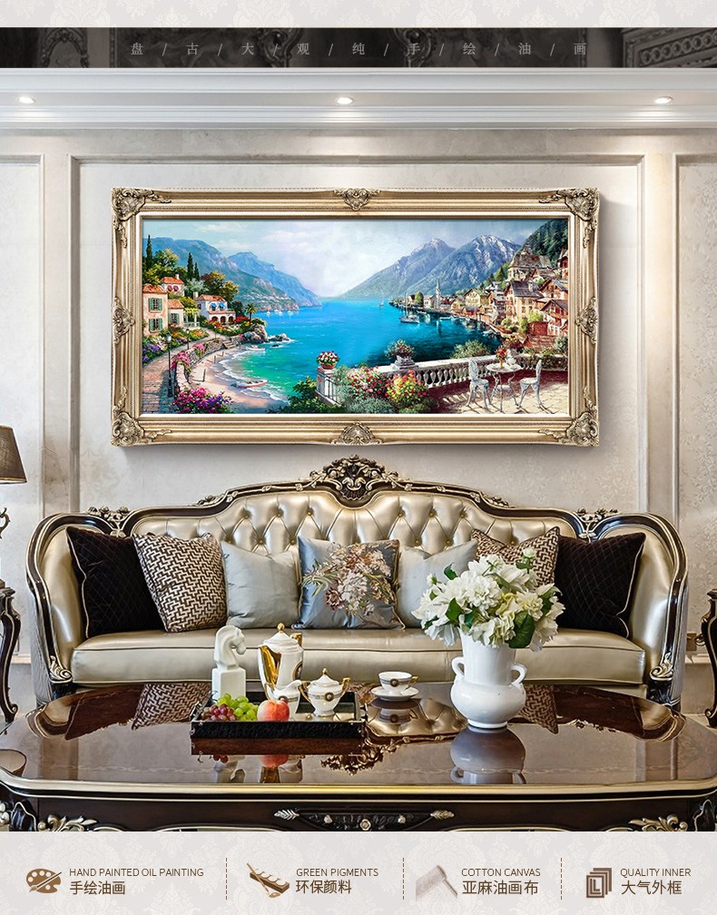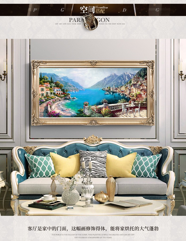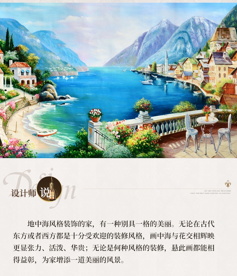 欧式客厅手绘油画地中海风景餐厅挂画山水壁画沙发背景墙画装饰画